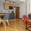 El apartamento se distribuye en una habitación matrimonial con baño, salón cocina totalmente equipada.